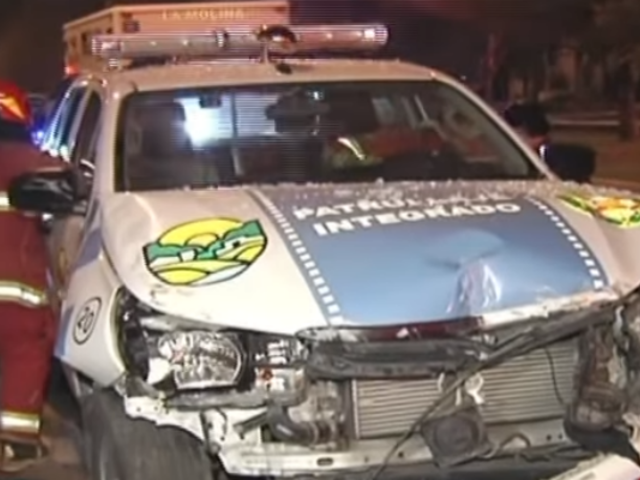 Esta madrugada, un fuerte sonido alarmó a los vecinos del distrito de La Molina, pues al salir de sus viviendas encontraron que una unidad de serenazgo había impactado contra la fachada de una empresa ubicada en la cuadra 7 de la avenida Flora Tristán.