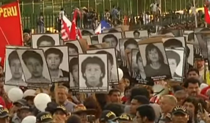 A tres días de la audiencia en la Corte Interamericana de Derechos Humanos (CIDH), cerca de mil manifestantes se reunieron en el Campo de Marte para llegar hasta la Plaza San Martín. Representantes de la Defensoría del Pueblo también acompañaron en esta marcha para supervisar que se respeten los derechos durante la movilización.