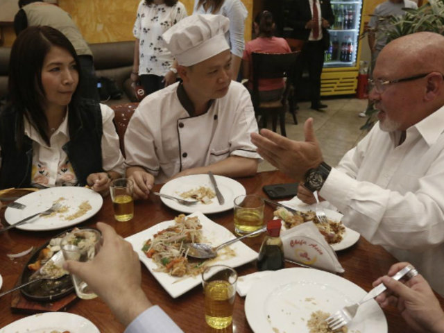 El ministro de Vivienda, Carlos Bruce visitó hoy el chifa "Asia", en Independencia, y mostró su apoyo a los propietarios del local, luego de que fueron falsamente acusados de vender carne de perro en sus platillos.