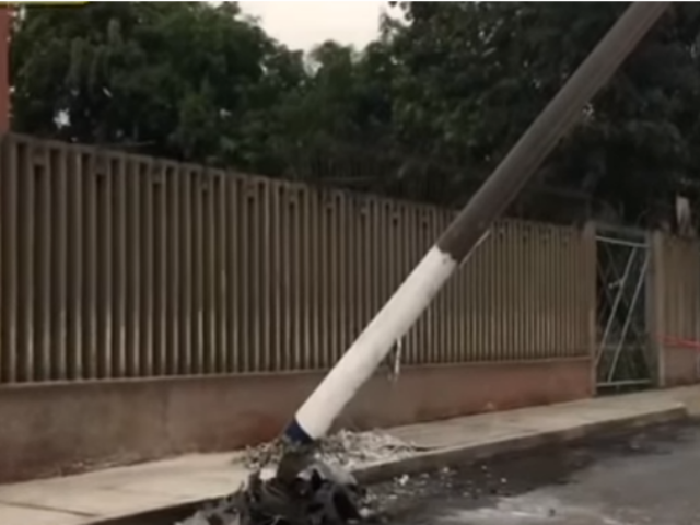 Debido a la intensa llovizna registrada durante la madrugada, un chofer perdió el control de su vehículo y chocó contra un poste de alumbrado público, dejándolo a punto de caer sobre la avenida Túpac Amaru, ubicada a la altura de la Universidad Nacional de Ingeniería, San Martín de Porres.