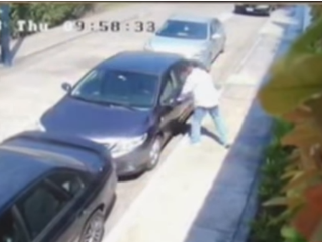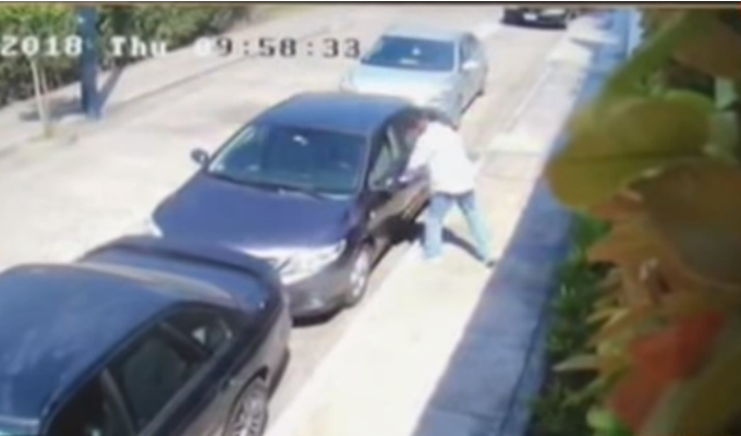 Uno de los últimos asaltos registrados por las cámaras de videovigilancia fue el robo de espejos a un vehículo estacionado. Las imágenes muestran cada uno de los pasos del sujeto, quien viste camisa, pantalón jean y zapatillas.