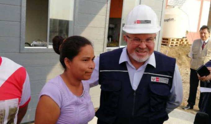 “Un año ha pasado, pero he seguido de frente, trabajando”, dijo Evangelina al recibir de manos del ministro su nueva casa. “Evangelina nos dio a todos un ejemplo de valor, de decisión al verla a ella, emerger del barro y no dejarse vencer frente a la adversidad”, expresó el ministro. El inmueble es una casa modular que recibió con el apoyo de una empresa privada, con el financiamiento de la Caja Huancayo.