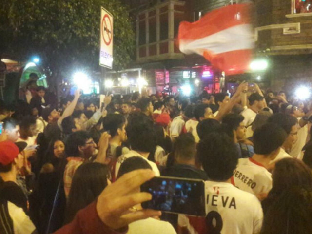 El importante partido de Perú frente a Croacia reunió a cientos de hinchas en varios puntos de la capital, uno de ellos fue la afamada Calle de de las pizzas, en el distrito de Miraflores.