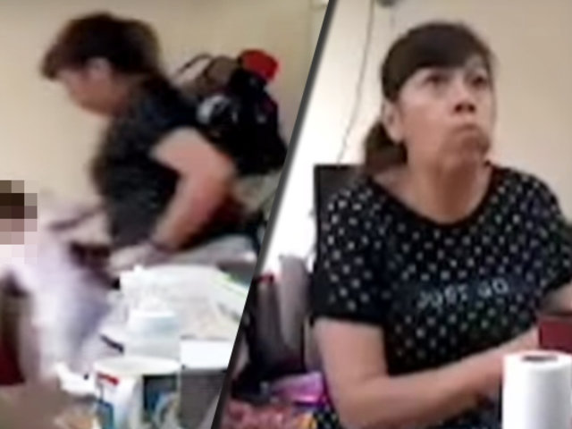 Pero lo más indignante es que lejos de calmarla para que no llore después de haberla maltratado, ella se pone a tomar su desayuno mostrándose indiferente ante el dolor de la menor.