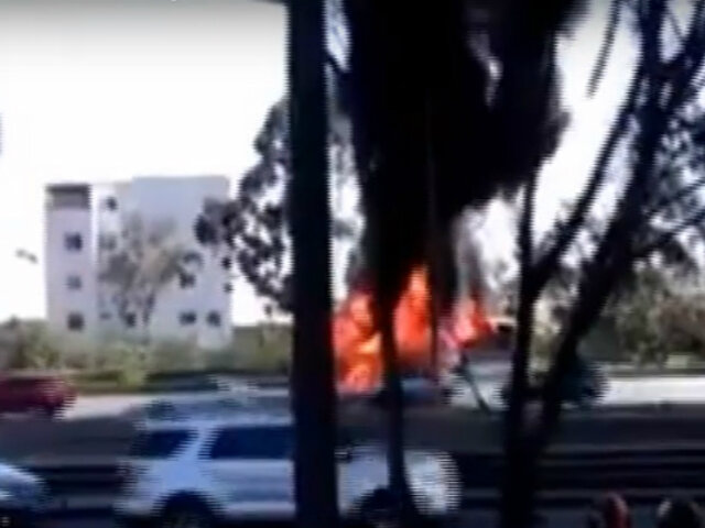 Bus de transporte público quedó envuelto en llamas en la avenida El Derby. El incidente está generando intenso tráfico en la avenida Javier Prado.
