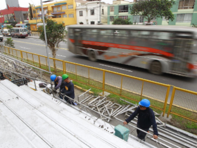 A pocos días de la celebración de Fiestas Patrias se iniciaron los trabajos de instalación de estrados y graderías en la transitada avenida Brasil para que el público disfrute del desfile militar.