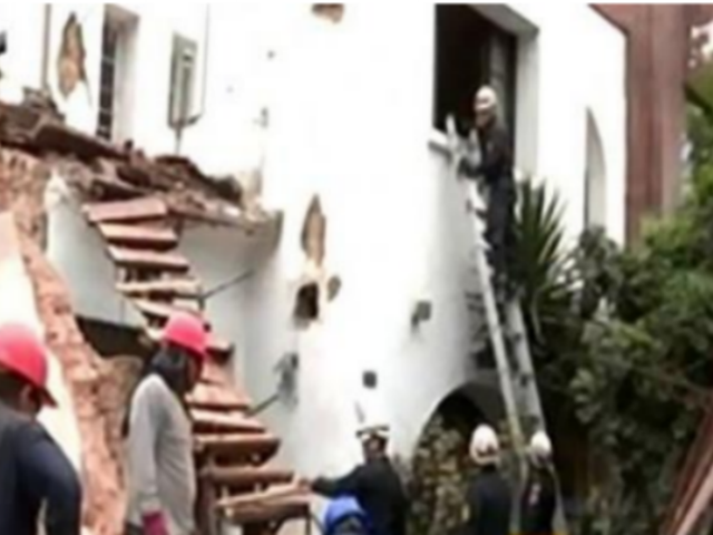 Debido a los trabajos de demolición en una vivienda, otra casa vecina ubicada en la calle 588 José Gálvez, Miraflores, se desplomó, dejando atrapada a dos personas, entre ellas una adulta mayor.