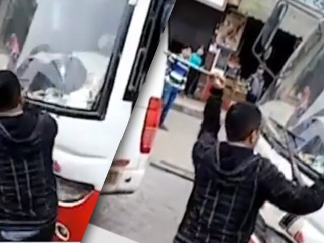 En nuestra capital un transeúnte grabó el momento cuando un cobrador muy enfurecido le rompe el espejo retrovisor a un bus de transporte público con la ayuda de una varilla de metal.