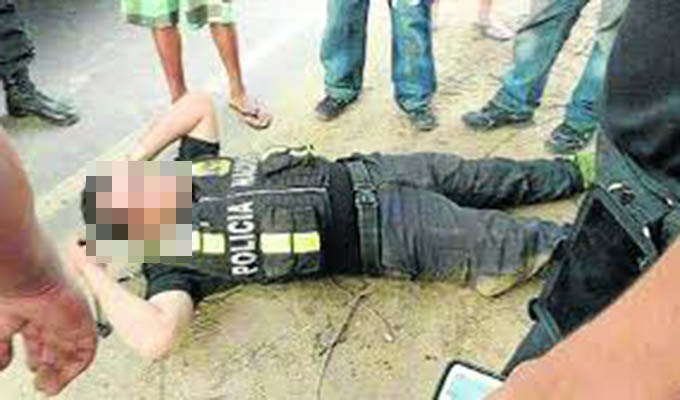 El chofer respondió airadamente, minutos después pisó el acelerador y se llevó al policía aferrado del capó, pese a los gritos de los traseúntes siguió con su acción sin importarle la vida del efectivo.
