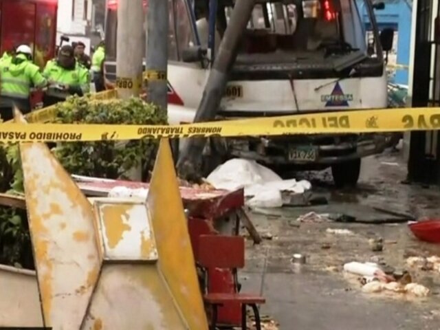 Según informes preliminares, la cúster no habría respetado la luz roja y chocó aparatosamente contra un taxi y luego contra el puesto de venta de desayunos. Producto del accidente Francisco Tambillo Maypalla murió en el acto. Su hija quedó gravemente herida pero poco después también perdió la vida.