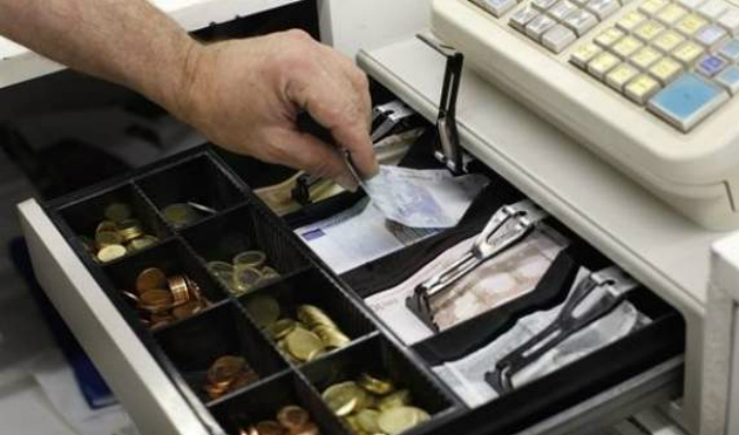 Mientras la mujer distrae a la vendedora, preguntándole por tallas y precios de ropas, el hombre se inclina sobre el mostrador y coge el cuaderno con el dinero.