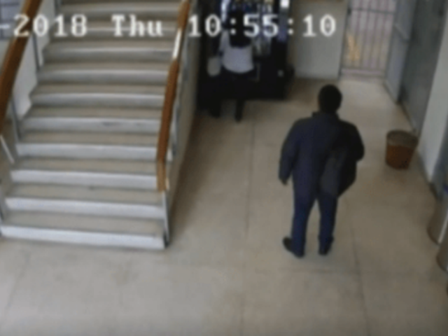 Como se muestra las imágenes de las cámaras, un sujeto de negro sale de uno de los laboratorios de la facultad y lleva en sus manos dos mochilas, una es suya y otra de su víctima. Luego el sujeto se acerca a la máquina dispensadora junto a una mujer e intenta sacar una computadora portátil; sin embargo, la salida de un alumno lo pone en alerta, entonces ella opta por dejar la mochila en el suelo y apartarse. Finalmente la ladrona regresa a la reja para asegurarse que nadie la ve y vuelve a tomar la mochila, saca la laptop y huye del lugar.