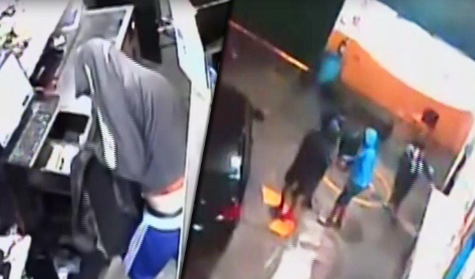 Cuando tenían la situación dominada, abrieron las puertas e hicieron ingresar un automóvil, de la maletera sacaron herramientas con las que hicieron un forado en la pared para acceder a una tienda que vende equipos de telefonía celular.