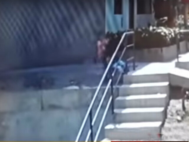 Un bebé cayó de cabeza desde una pendiente de dos metros de altura mientras se encontraba en su coche. Cámaras de seguridad del condominio Montegrande, ubicado en el kilómetro 37 de la Panamericana Norte en Puente Piedra, captaron las crudas imágenes.