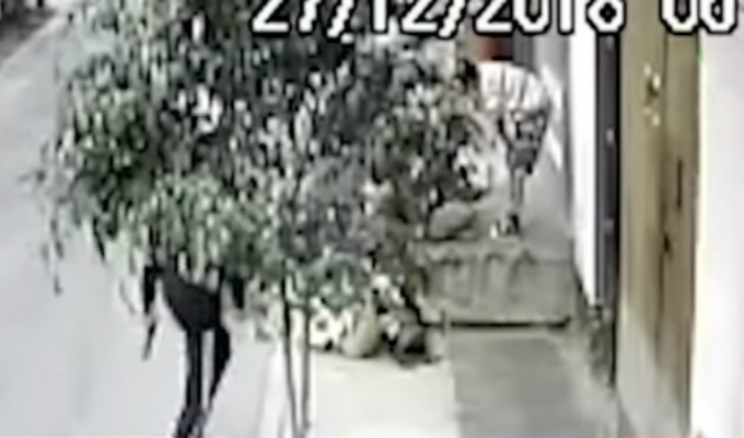 Una cámara de seguridad captó el momento en el que tres menores de edad jugaban afuera de una vivienda, a los pocos segundos, un hombre vestido de negro con una gorra blanca, sin ningún remordimiento y con total cobardía, apunta de frente con una pistola a un niño para robarle su celular y hasta patea a uno de ellos.
