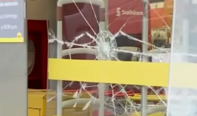 Según explican, habrían sido ocho ladrones, quienes descendieron de dos autos para romper a ‘combazos’ las ventanas y mamparas, pero tras no obtener resultados, utilizaron un auto y violentaron la puerta.