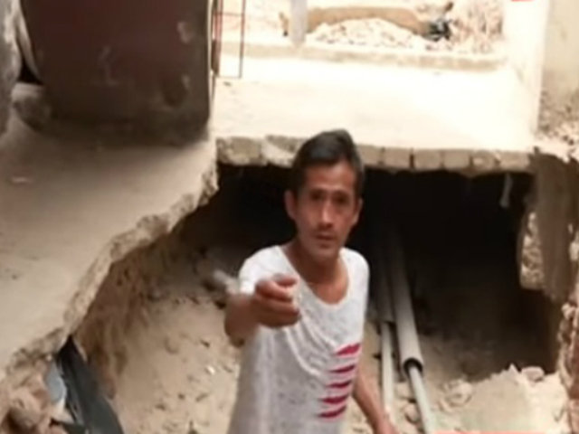 Un drama es el que vive la familia de Cosme Parihuana Mendoza desde el pasado 7 de noviembre, luego que una filtración de agua por una tubería rota provocó un enorme forado en su vivienda, ubicada en el asentamiento humano Leticia, en el Rímac.