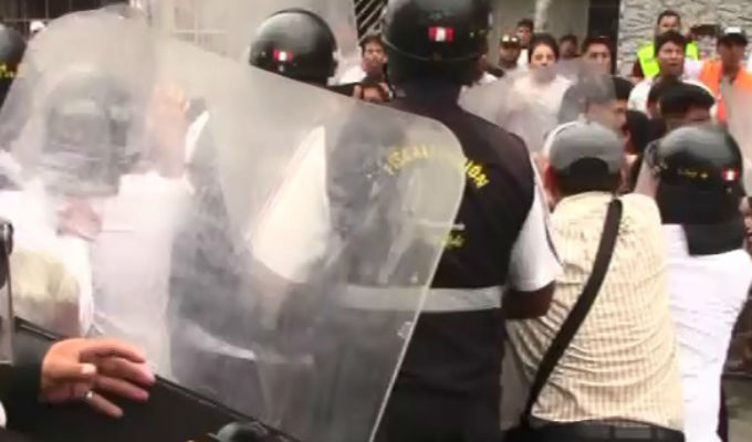 Trabajadores de más de 30 empresas de transporte interprovincial informal protestaron y se resistieron con cilindros, palos y piedras. Finalmente, con apoyo de 25 fiscalizadores y 30 agentes se colocó bloques de cemento para impedir el acceso al terminal.