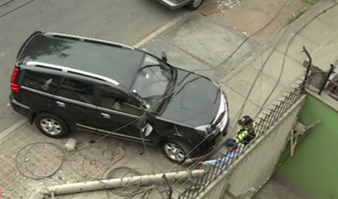 El poste de concreto que sostenía varios cables de telefonía cayó sobre una camioneta estacionada en el distrito de Ate Vitarte.