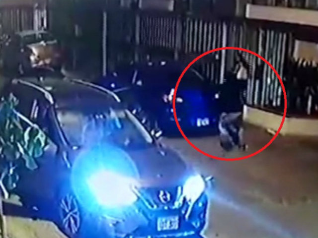 Cámaras de seguridad registraron cómo segundo a segundo, un grupo de delincuentes asaltaron a una pareja en la puerta de su vivienda, ubicada en la calle ‘Las Hienas’ en Salamanca, Ate Vitarte.