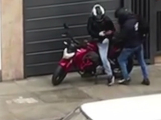 En las imágenes, captadas por los vecinos que presenciaron el hecho, se aprecia como estos hampones salen del banco, guardan el arma de fuego que usaron y acomodan la mochila donde llevaban el dinero robado. Posterior a ello suben a una moto y finalmente huyen de la zona con dirección a la estación Matellini del Metropolitano.