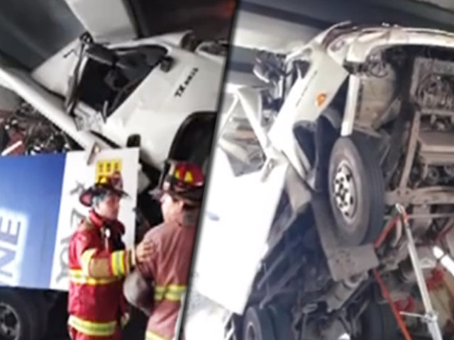 Nuevamente un vehículo quedó empotrado debajo del puente del cruce de las avenidas Brasil y La Marina en el distrito de Pueblo Libre. Un camión terminó con la carrocería comprometida luego de que el conductor intentara pasar la unidad de carga por debajo de la estructura, pese a que sobrepasaba la altura permitida.