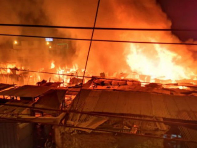 Lamentable. El fuego consumió esta madrugada la mercadería de más de 500 puestos del mercado ‘Bolívar’, ubicado en la avenida Simón Bolívar, en Villa el Salvador.