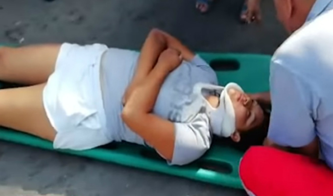 “Yo iba a una velocidad normal cuando de pronto sentí un jalón. No sé si fue exactamente en el cuello, pero de pronto el casco lo tenía abierto. El caso ha salido volando y la moto para la izquierda y yo salí para la derecha”, manifestó la agraviada.