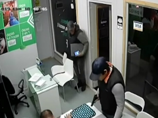 Posteriormente hacen ingresar a los trabajadores a otro ambiente y se produce un forcejeo, donde el vigilante, quien sería un policía de civil saca su arma y empieza a disparar. Una de las balas terminaría hiriendo a uno de los hampones en el brazo derecho.