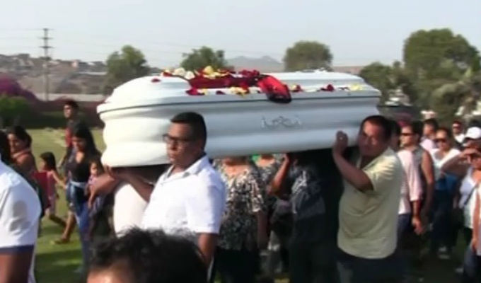 Familiares despidieron este jueves 21 los restos del escolar que falleció luego de recibir un impacto de bala en el colegio Trilce de Villa El Salvador. El entierro se realizó en medio de dramáticas y conmovedoras escenas.