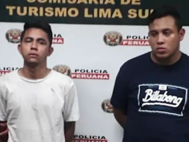 Dos sujetos fueron capturados por personal de serenazgo y la Policía Nacional cuando se daban a la fuga, luego de presuntamente haber robado a dos turistas israelíes. El hecho ocurrió a escasos metros del cruce las avenidas Arequipa y Enrique Palacios, en Miraflores.