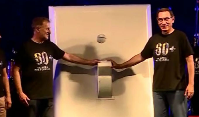 El presidente Martín Vizcarra y el alcalde Jorge Muñoz presidieron La Hora del Planeta. De forma simbólica, ambos mandatarios bajaron el interruptor de la energía eléctrica y las luces de la Plaza de Armas y de los edificios aledaños se apagaron.