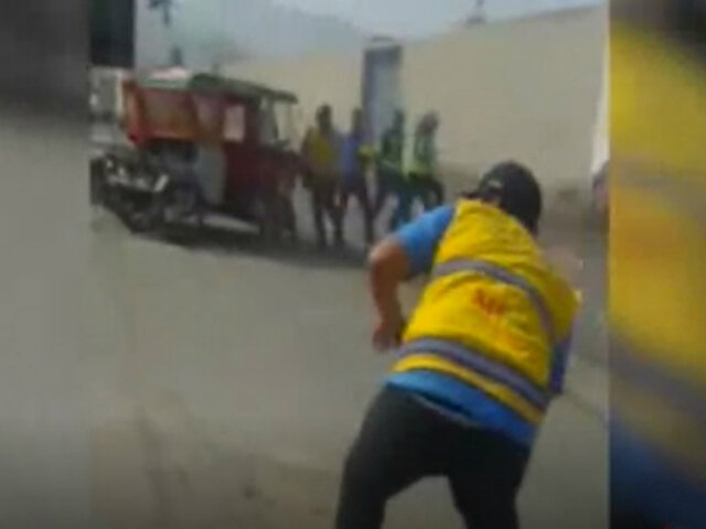 Un grupo de mototaxistas utilizaron palos, piedras y hasta bombas molotov para evitar que sus vehículos sean confiscados por el personal de Fiscalización del Municipio de Ate Vitarte.