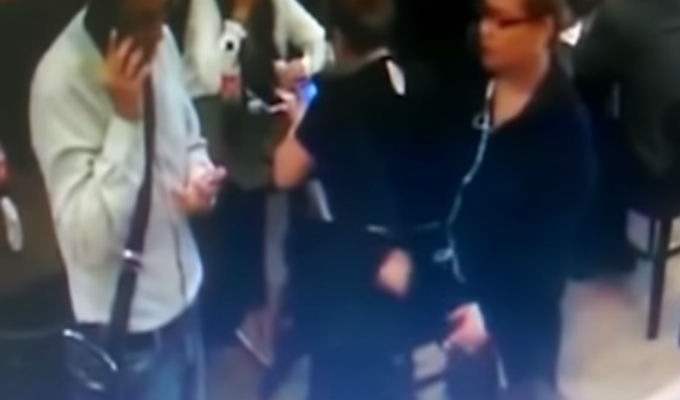 Cámaras de seguridad grabaron el preciso instante en el que una mujer, aparentó ser una cliente más, para robar la cartera de una comensal, quien se encontraba al interior de una conocida cafetería, ubicada en la cuadra 1 del jirón Dasso, en San Isidro.