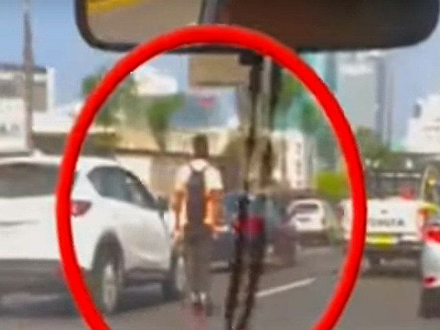 El joven patinó por varias cuadras de la transitada avenida, incluso circuló por el zanjón cruzando y adelantando el paso de vehículos particulares, entre ellos autos y camionetas.