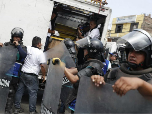 Ante este operativo, los comerciantes informales opusieron resistencia lanzando piedras a los efectivos policiales que apoyaban a los trabajadores municipales.
