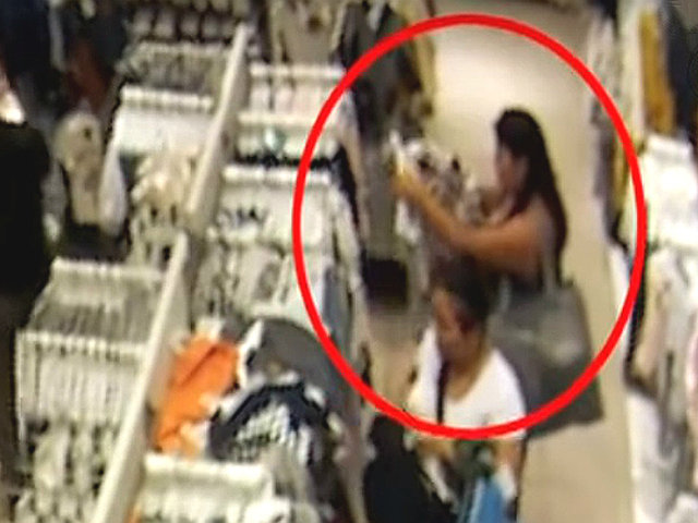 Después aparece Angie Ortiz Cristobal con un bolso en el que llevaba un poco de ropa, continúa su trabajo y escoge hasta cuatro modelos, revisa que no tengan fallas, luego se esconde y les quita el precinto de seguridad con un imán.