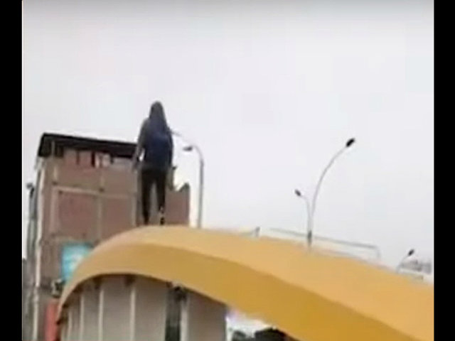 Sin medir el peligro, un joven fue grabado mientras caminaba por uno de los arcos del puente Leoncio Prado de la Vía Expresa, ubicado en el límite de Miraflores y Surquillo.