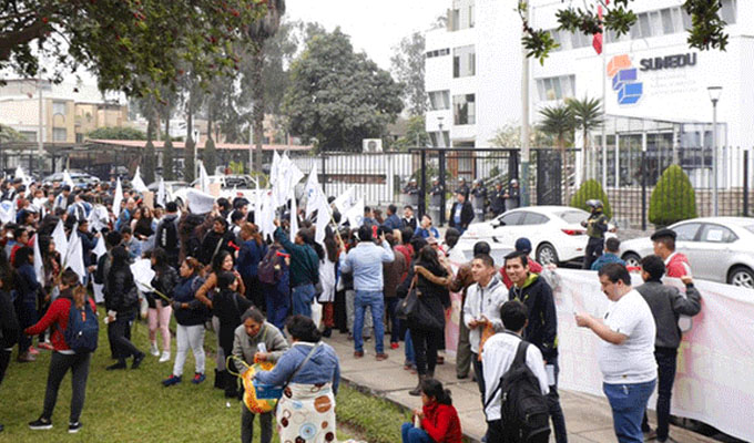 Alumnos y padres se agruparon frente a la Sunedu, por el cierre de la casa de estudios a la que pertenecían. Temen por su futuro académico luego de que clausuran dicha universidad.