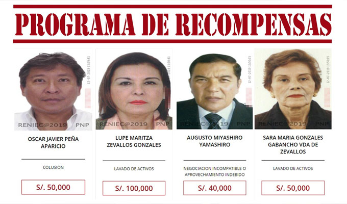 De la misma forma, se ofrece una recompensa de S/.50 mil para Óscar Peña Aparicio, condenado a cinco años de cárcel por el delito de negociación incompatible.