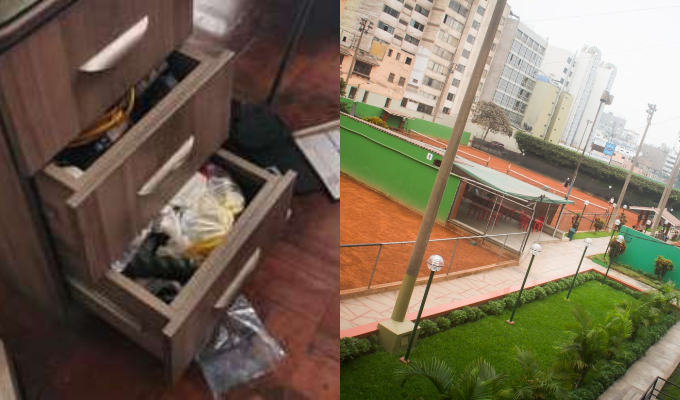 El administrador compartió algunas fotografías que muestran los ambientes violentados por el delincuente. El Club Lawn Tennis ya había sido entregado al Comité Organizador de Lima 2019 (COPAL), pues en este local se disputará la disciplina de tenis.