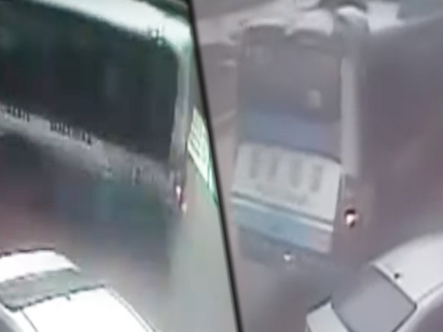 En el distrito de Villa El Salvador, cámaras de videovigilancia captaron el preciso instante cuando un bus de transporte público perdió el control y tras chocar contra un poste y luego contra un automóvil, dio varias vueltas sobre su propio eje.