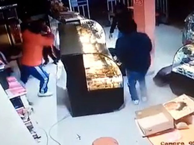 Imágenes proporcionadas por las cámaras de seguridad de una panadería en Ventanilla, muestran el momento exacto en que tres sujetos armados ingresaron a robar.