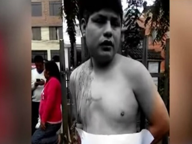 Este individuo que responde al nombre de Ángel Montañez fue desnudado, atado a un poste en plena vía pública y golpeado. Asimismo, le colocaron un cartel con el presunto delito que habría cometido.