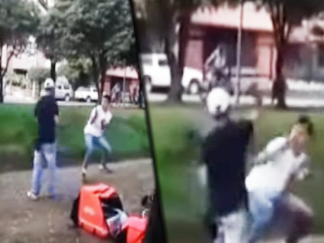En un video captado por uno de los testigos se puede observar a los dos repartidores de delivery, de un conocida empresa, cuando se enfrentaron con cuchillos en plena calle. Dejaron sus bicicletas con los productos a un lado de la pista para batirse temerariamente a duelo en un parque, mientras sus colegas los alentaban para seguir con la pelea.
