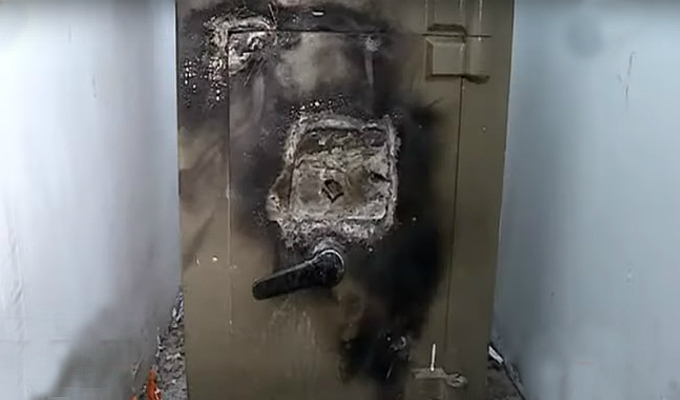 Calculado. Delincuentes quemaron y agujerearon una caja fuerte de acero y concreto para extraer más de 150 mil dólares, la madrugada del jueves 19 de setiembre.