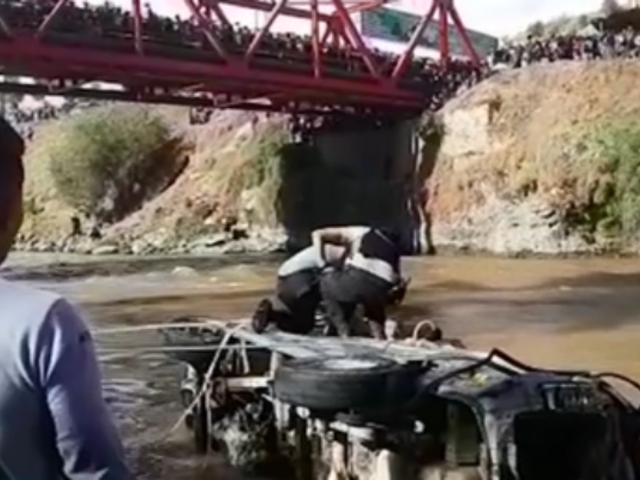 Vehículo de la empresa ‘El Triunfo’ cayó al río Mantaro. Efectivos policiales y bomberos ayudaron a rescatar los cadáveres, que habían sido arrastrados por la corriente.