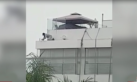 Al borde de un sexto, un hombre fue captado cuando trabajaba en las alturas de un edificio sin ningún tipo de protección. Incluso, no le importa arriesgar su vida tras caminar sin problemas en el estrecho techo del inmueble.
