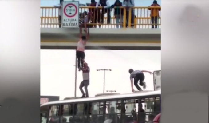 Sorprende rescate de presunto suicida. Orientador no la pensó dos veces y logró detener a un bus, para treparlo y salvaguardar al joven.