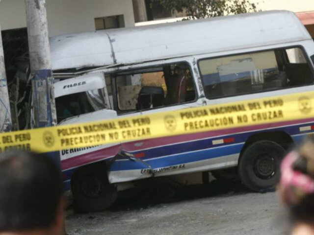 Vecinos señalaron que el conductor, conocido como ‘El Chale’, se dirigía al mecánico porque el vehículo presentaba un desperfecto. Según la Sunarp, el propietario de esta combi, de placa H1F-793, es Eliseo Ccanccahua Banda.